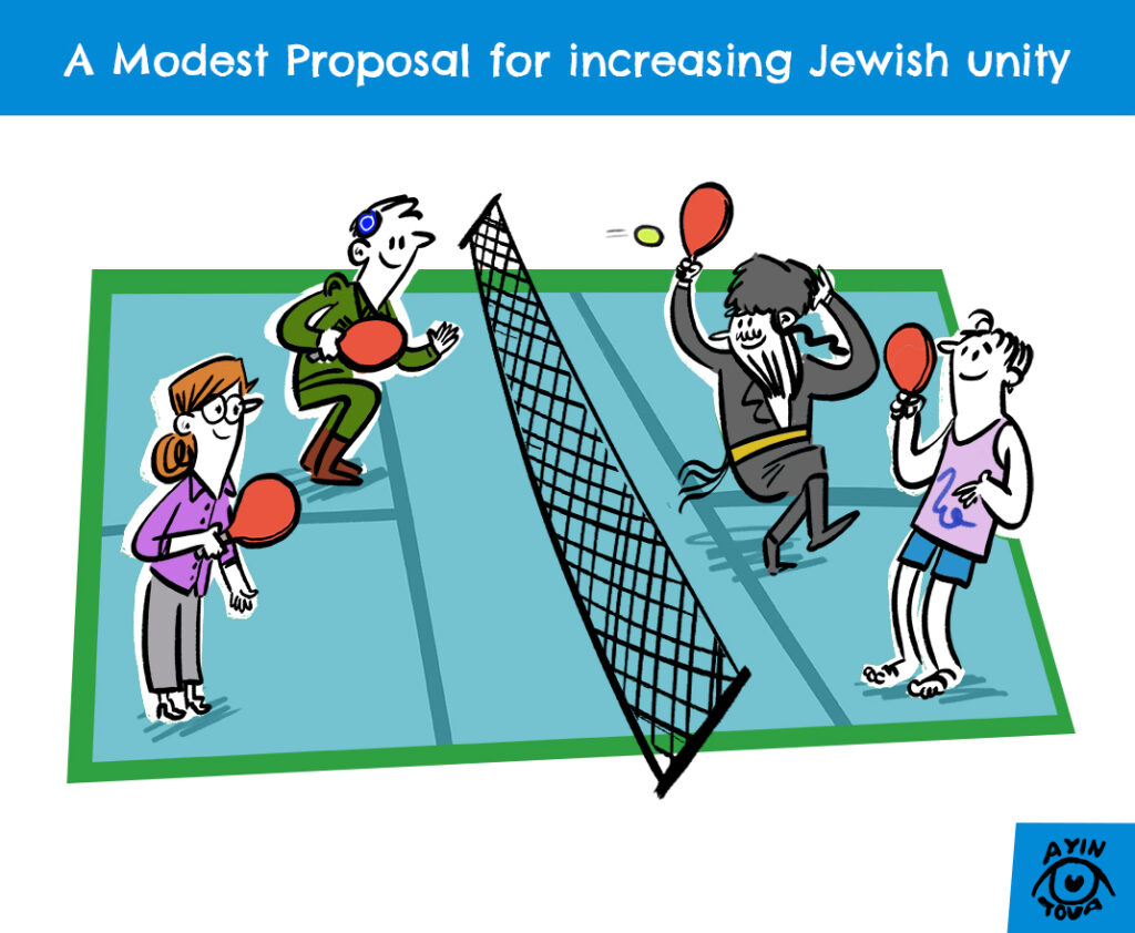 Ayin Tova – meaning “good insight” in Hebrew – offers a thoughtful, often provocative, look at Jewish life and culture. Through collaboration with seasoned social and political artists, Ayin Tova Cartoons are biting visual snapshots of the contemporary Jewish and Israeli condition.